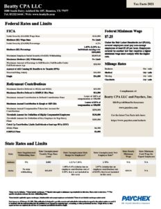 Beatty CPA 2021 Tax Facts Sheet Fed & State